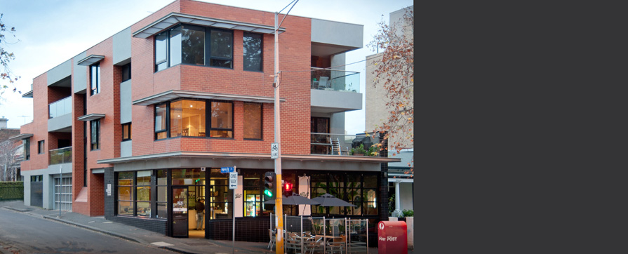 Replacing the former post office, this three level apartment building over the corner café is just a crowds roar away from the MCG, yet is in a peaceful, leafy pocket of Jolimont.
